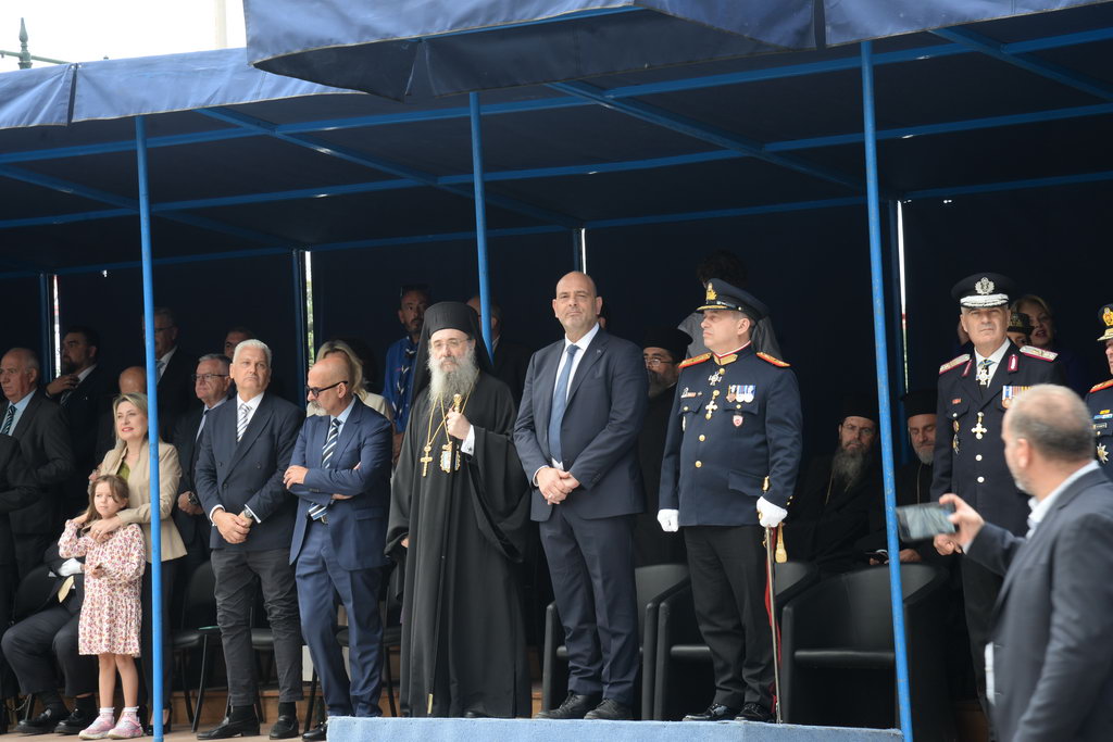 · Τέλος ὁ Σεβασμιώτατος παρηκολούθησε καί εὐλόγησε τήν μεγαλειώδη παρέλαση τῶν πολιτικῶν καί στρατιωτικῶν τμημάτων καί συνεχάρη ἰδιατέρως τούς Μαθητάς καί Φοιτητάς καί τά Στρατευμένα παιδιά μας.
