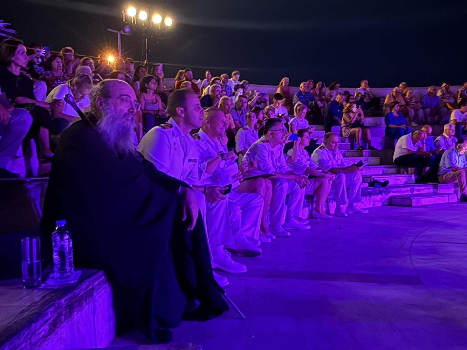 Ὁ Σεβασμιώτατος Μητροπολίτης Πατρῶν κ.κ. Χρυσόστομος ἐτίμησε μέ τήν παρουσία του, τήν Ἐκδήλωση πού πραγματοποιήθηκε στο Θέατρο τῆς Μαρίνας Πατρῶν, ὅπου παρουσιάστηκε καταπληκτικό Πρόγραμμα ἀπό τήν Μπάντα τοῦ Λιμενικοῦ Σώματος.