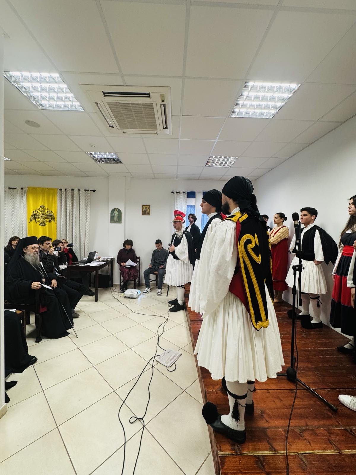Μετὰ τὴν λαμπρὴ ἑορταστικὴ Ἐκδήλωση τῶνΜαθητῶν τοῦ Ἐκκλησιαστικοῦ Λυκείου, ὁ Σεβασμιώτατος μέσα ἀπὸ ἕνα ἐνθουσιαστικό του λόγο, ἐπήνεσε τὰ παιδιὰ γιὰ τὰ Ὀρθόδοξα καὶ βαθειὰπατριωτικά τους αἰσθήματα καὶ εὐχαρίστησε, τὸνΔιευθυντὴ τοῦ Ἐκκλησιαστικοῦ Λυκείου κ. Βασίλειο Μπούτσικα, τοὺς Καθηγητὰς καὶ τοὺς Γονεῖς τῶνΜαθητῶν καὶ κατέληξε: «Παιδιά μου κρατῆστε στὴνκαρδιά σας τὸν ἡρωισμὸ τῶν προγόνων μας καὶμιμηθεῖτε τους.