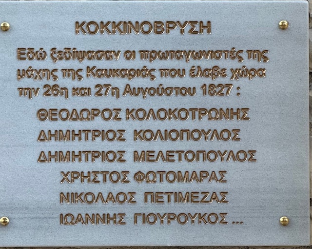Ἐδῶ ξεδίψασαν οἱ πρωταγωνιστές τῆς μάχης τῆς Καυκαριᾶς πού ἒλαβε χώρα τήν 26η καί 27η Αὐγούστου 1827.