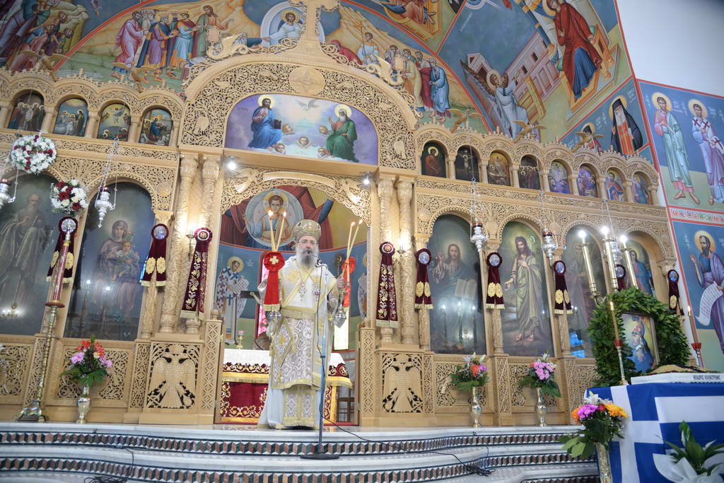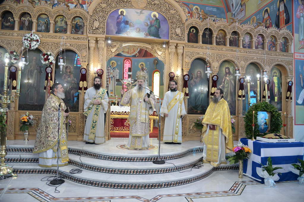 Τὴν Θείας Λειτουργίας ἡ ὁποία ἐτελέσθη τὴν Κυριακὴ 8 Φεβρουαρίου ἐ.ἔ. στὸν Ἱερὸ Ναὸ Ἁγίου Χαραλάμπους Τσουκαλεΐκων καὶ τοῦ Ἱεροῦ Μνημοσύνου, προέστη ὁ Σεβασμιώτατος Μητροπολίτης Πατρῶν κ.κ. Χρυσόστομος, ὁ ὁποῖος μὲ λόγο μεστὸ νοημάτων, ἀνεφέρθη στὴν μεγάλη προσωπικότητα τοῦ μακαρίου καὶ ἀοιδίμου Ἀρχιστρατήγου, ὁ ὁποῖος ὡδήγησε τὴν Ἑλλάδα μέσα ἀπὸ ἀγῶνες ἐνδόξους στὴν Ἐλευθερία.
