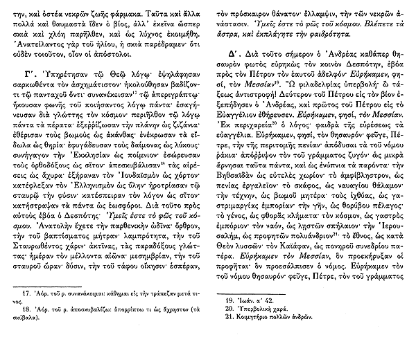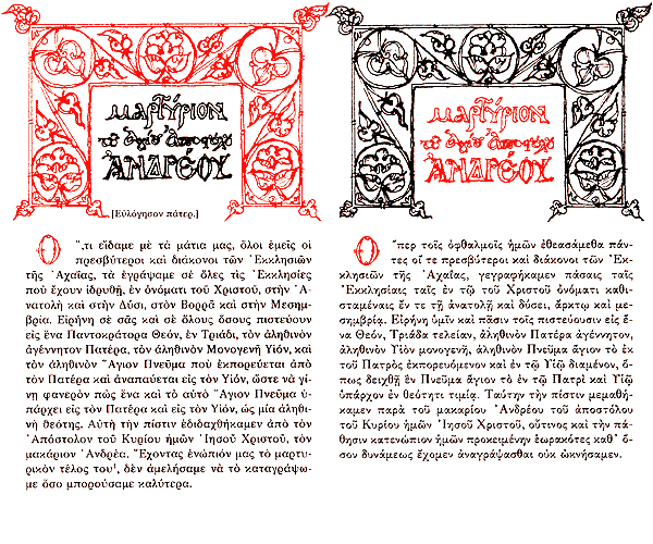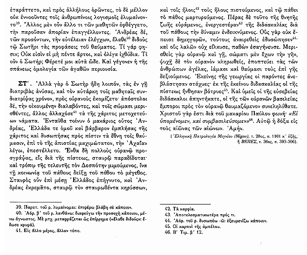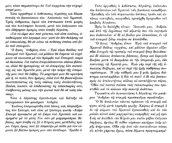 Όμως, κατά την γνώμη μας, δεν έχει καμμία απολύτως σχέσι με τα παράλληλά του γνωστικά κείμενα των πρώτων αιώνων, και θα ήταν δυνατόν να χρησιμοποιηθή χωρίς επιφυλάξεις. Ο αναγνώστης μπορεί, ευθύς αμέσως, να διαπιστώση πως, όχι μόνον η εσωτερική μαρτυρία του κειμένου, το ότι συνετάγη από τους αυτόπτας του σταυρικού μαρτυρίου, αλλά και ολόκληρο το λιτό και ανεπιτήδευτο ύφος του, προδίδει την αρχαία καταγωγή και την αυθεντικότητά του. Ταπεινώς φρονούμε ότι πρόκειται για τον πρωταρχικό πυρήνα όλων των άλλων έργων περί του Αγίου Ανδρέου, και ότι είναι ένα αυθεντικό, από ιστορικής απόψεως, κείμενο, ικανό να μεταφέρη την πνευματικότητα, τον παλμό και τον μαρτυρικό ζήλο των πρώτων χριστιανών, αλλά, ατυχώς, διέφυγε της οφειλόμενης προσοχής και εκτιμήσεως. Με την παρούσα έκδοσι, η οποία ως επίμετρο έχει δύο εγκωμιαστικούς λόγους προς τον Απόστολον Ανδρέαν, ένα του Αγίου Πρόκλου, Αρχιεπισκόπου Κωνσταντινουπόλεως, και έναν άλλον, αποδιδόμενο εις τον Άγιον Αθανάσιο, Αρχιεπίσκοπον Αλεξανδρείας, ευχόμεθα ταπεινώς, το "Μαρτύριον" του Πρωτοκλήτου να μας μυήσει βαθύτερα εις το "μυστήριον του Σταυρού".